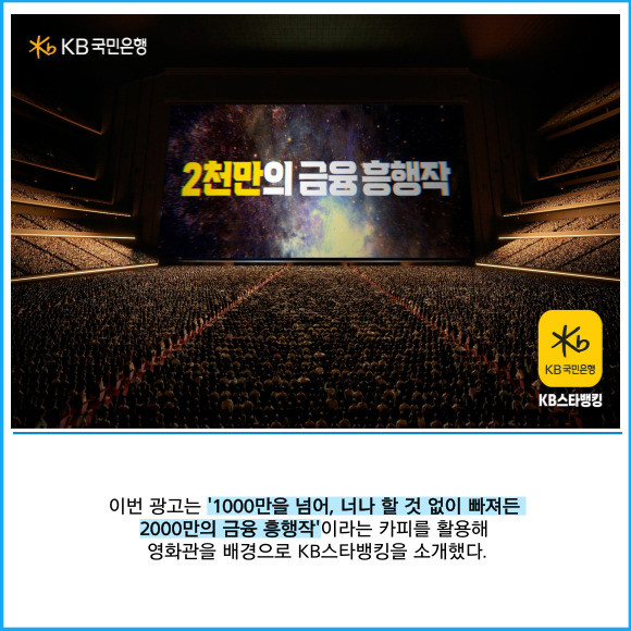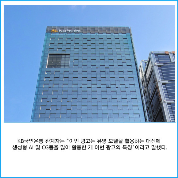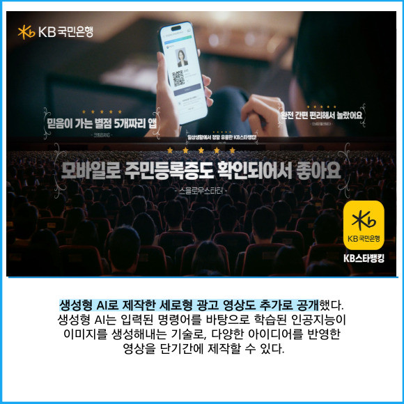 [프라임경제] KB국민은행은 생성형 인공지능(AI)과 컴퓨터 그래픽(CG) 기술을 활용한 새로운 'KB스타뱅킹' 광고 영상을 공개했다고 6일 밝혔다.