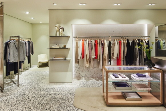 매장 벽면은 최고급 대리석을 활용해 꾸몄다. 한섬은 아뇨나의 CEO이자 크리에이티브 디렉터인 '스테파노 아이모네'의 디자인 철학에 맞춰 아뇨나의 전담 건축팀과 함께 매장 인테리어를 기획했다. 베네티아 전통 바닥 디자인을 적용하고 유리와 목재를 결합한 가구 등을 사용해 고급스러운 인테리어를 연출했다.