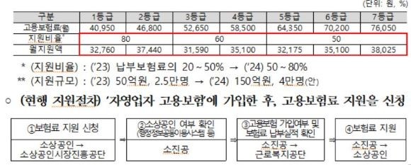 소상공인 고용보험료 지원사업 개요. ⓒ 중소벤처기업부