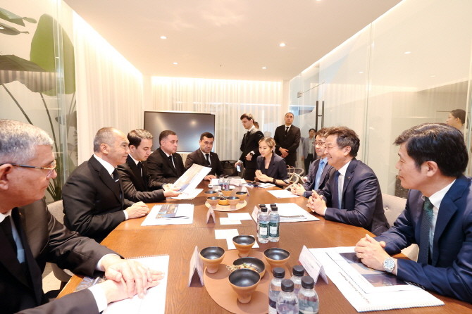 백정완 사장(우측 중앙)이 투르크메니스탄 신도시 사절단 현안을 논의하는 모습. Ⓒ 대우건설