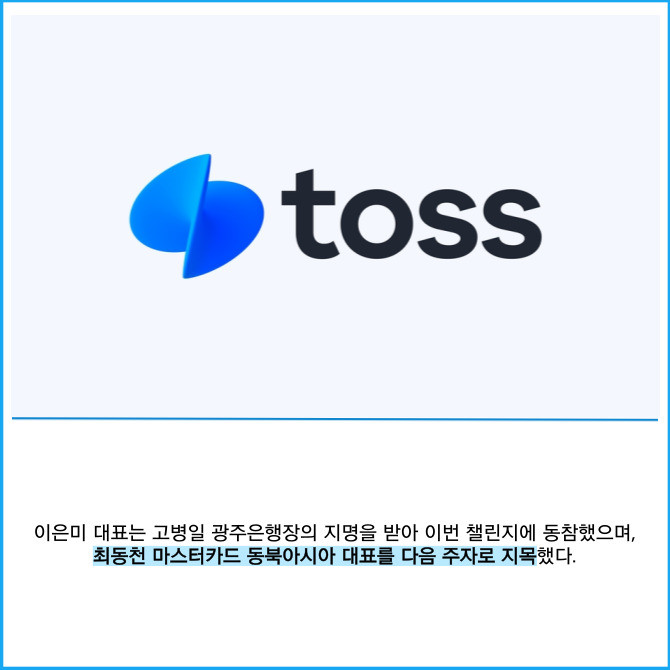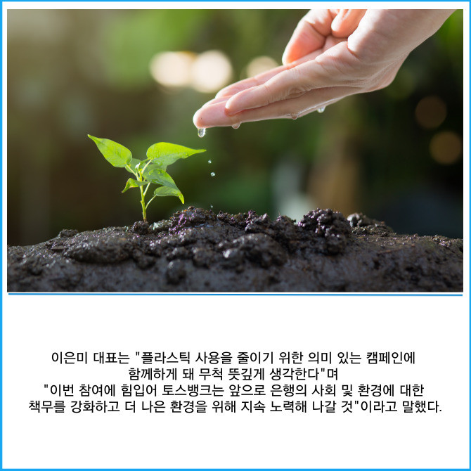 [프라임경제] 토스뱅크는 이은미 대표가 범국민 환경보호 캠페인인 '바이바이 플라스틱 챌린지'에 동참했다고 12일 밝혔다.