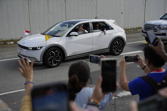 프란치스코 교황이 싱가포르에서 현대차의 전용 전기차 아이오닉 5를 타고 현지에서 다양한 행사에 참석한 것으로 알려져 화제가 되고 있다. ⓒ 연합뉴스