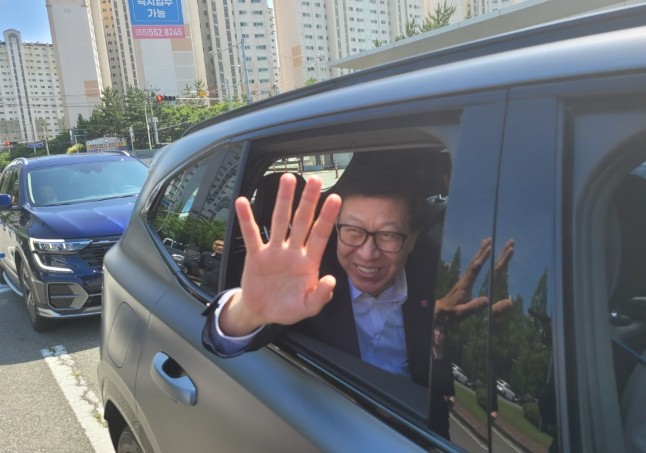 박형준 부산시장이 지난 7월1일 르노코리아 부산 본사를 방문해 중형 SUV 신차 '그랑 콜레오스'를 시승하고 있다. ⓒ 프라임경제