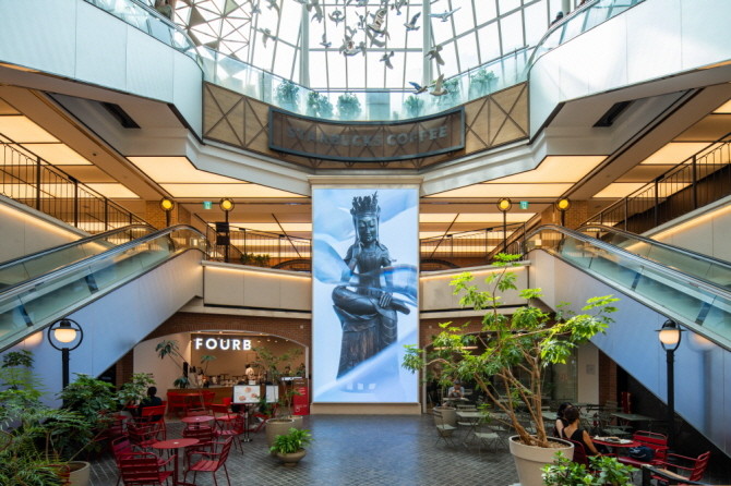 파미에스테이션 중앙 광장에 설치된 길이 7M의 세로형 패널에서는 국립중앙박물관 소장 국보 '반가사유상' 2점을 주제로 한 콘텐츠가 상영된다. 6세기와 7세기의 반가사유상의 미소와 조각 디테일을 비교하며 박물관 내 정적인 감상과는 다른 경험을 제공한다.