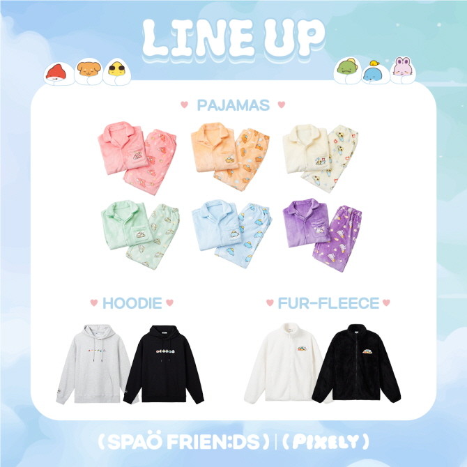 이번 스파오와 잠뜰 TV의 협업 컬렉션은 잠뜰, 덕개, 각별, 수현, 공룡, 라더 등 인기 픽셀리 캐릭터를 활용한 파자마 6종을 비롯해 퍼플리스 2종, 후드 풀오버 2종으로 구성됐다.