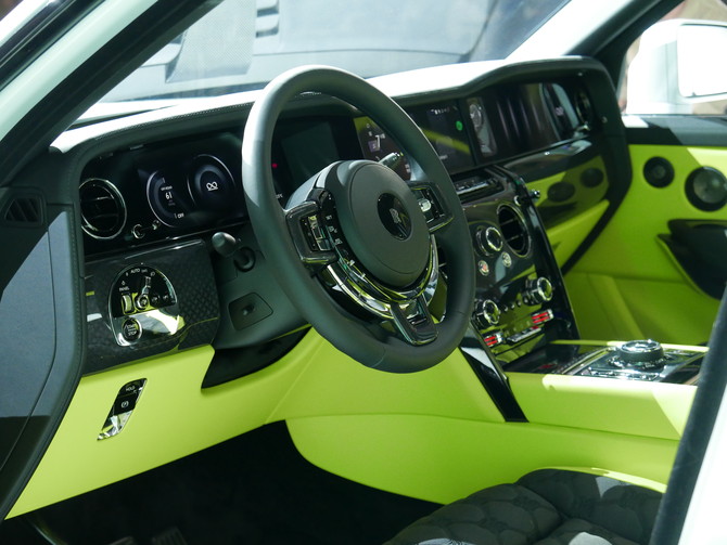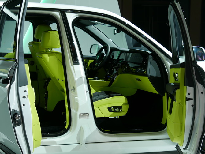 함께 전시된 블랙 배지 컬리넌 시리즈 Ⅱ는 간결한 아틱 화이트 색상이 적용됐으며, 23인치 블랙 배지 휠과 어두운 크롬으로 마감된 환희의 여신상 등 외관 디테일과 조화를 이룬다. 또 내부 및 시트는 대담한 라임 그린(Lime Green)과 블랙 색상으로 마감해 블랙 배지 모델 특유의 역동성을 강조함과 동시에 외장과의 대비를 꾀했다.