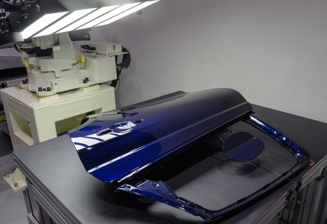 또 무한 다축 홀딩 픽스처(고정장치) 기술은 △도어 △후드 △휠 등 각종 파트를 조립하기 위해 기존에는 각 파트에 맞는 픽스처가 별도로 필요했다면 이를 하나의 픽스처로 조립할 수 있도록 해줘 픽스처 제작비용 절감은 물론 공장 유연화에 매우 효과적인 기술이다. 파트가 바뀔 때마다 해당 정보가 PC에 자동입력되고 이를 통해 픽스처의 파트 고정 포인트가 자동으로 이동돼 해당 파트를 고정할 수 있다.