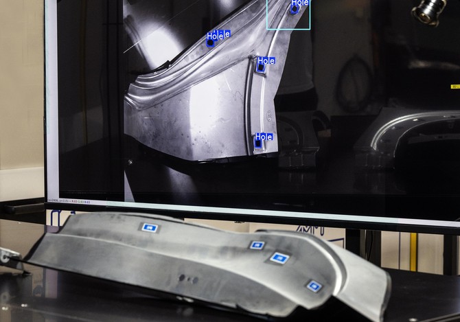 AI 영상 분석 기술을 활용해 실시간으로 차량의 판넬 품질을 자동 검사하는 모습. ⓒ 현대자동차