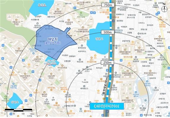 2024년 제5차 재개발 후보지 선정구역 현황 - 동작구 사당동 일대. Ⓒ 서울시
