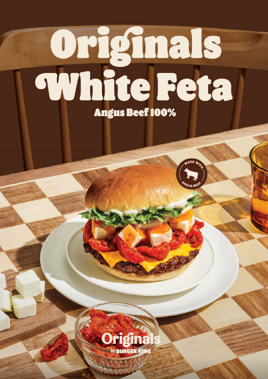 버거킹이 불맛과 육즙 가득한 앵거스패티와 풍성한 식감의 페타크림치즈, 풍미 가득한 허브 마리네이드 토마토 등 신선한 조합으로 차원이 다른 맛의 밸런스를 선사하는 프리미엄 라인 '오리지널스 화이트 페타'를 출시한다.