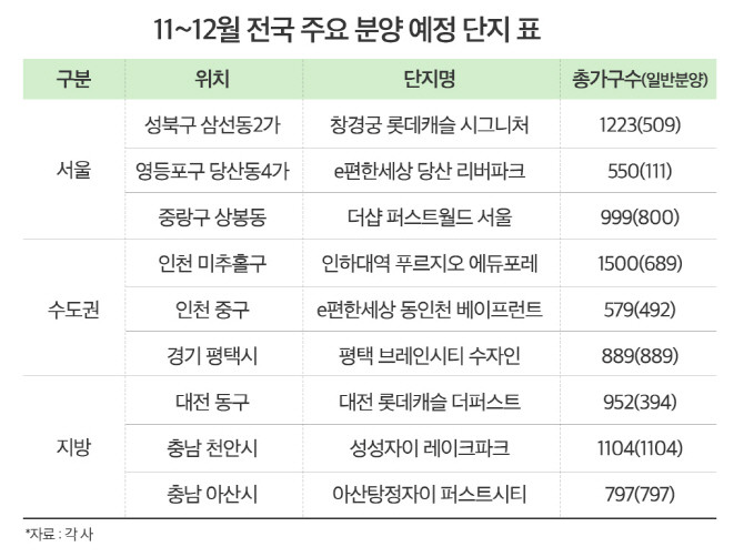 11~12월 전국 주요 분양 예정 단지 표. Ⓒ 더피알