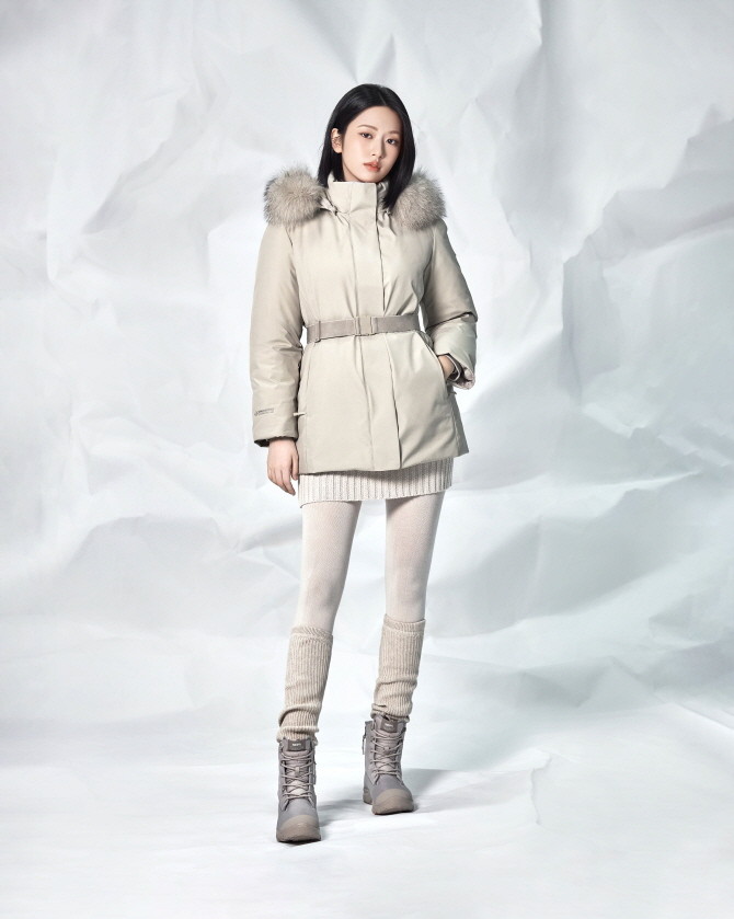 또한 8:2 고밀도 덕 다운으로 제작된 벨티드 숏 다운은 입체적인 패턴과 100% 천연 폭스퍼 디테일이 특징이다. 전년 대비 길어진 기장으로 안정적인 실루엣을 제공한다.