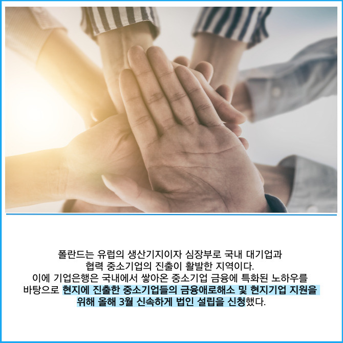 [프라임경제] IBK기업은행(024110)은 국내 은행 최초로 폴란드 금융감독청(KNF)으로부터 법인 설립 인가를 취득했다고 28일 밝혔다.