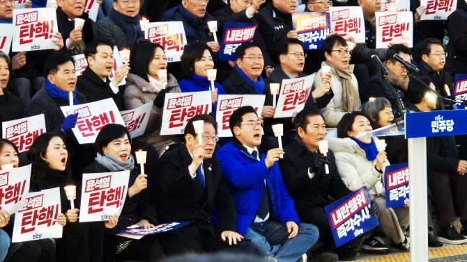 [프라임경제] 더불어민주당은 4일 오후 서울 여의도 국회에서 '윤석열 대통령 사퇴촉구 탄핵추진 범국민 촛불문화제'를 열었다.