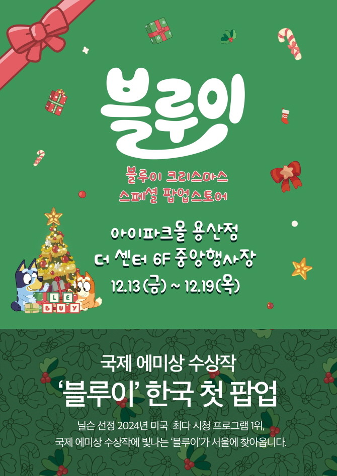 HDC아이파크몰이 연말과 다가오는 크리스마스를 맞이해 아이들과 온 가족이 함께 즐길 수 있는 '블루이 크리스마스 스페셜 팝업스토어'를 선보인다. © HDC아이파크