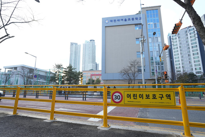 한국타이어가 새여울초등학교 어린이보호구역에 방호울타리를 설치했다. ⓒ 한국타이어