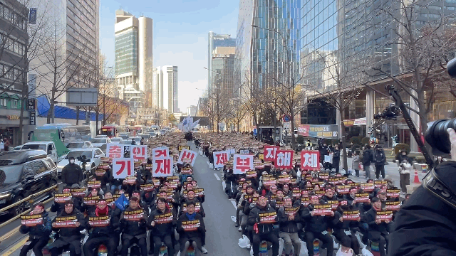추운 날씨 속에서도 조합원들은 결의를 다지며 집회를 마무리했다. 도로를 가득 메운 구호와 깃발은 금융위원회까지 이어졌고, 조합원들은 하나의 목소리로 단결을 강조했다.