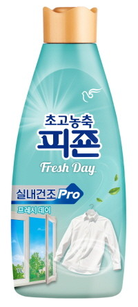 새롭게 선보이는 '초고농축피죤 실내건조 Pro 프레시데이'는 깨끗하고 상쾌한 향기를 구현한 제품으로 실내 건조에 특화됐다. 한국의류시험원 테스트 결과 탈취력 99%를 인정받아 쉽게 빠지지 않는 새집, 새 옷 냄새뿐만 아니라 일상에서 묻어나는 잡냄새, 음식물 냄새를 효과적으로 제거한다.