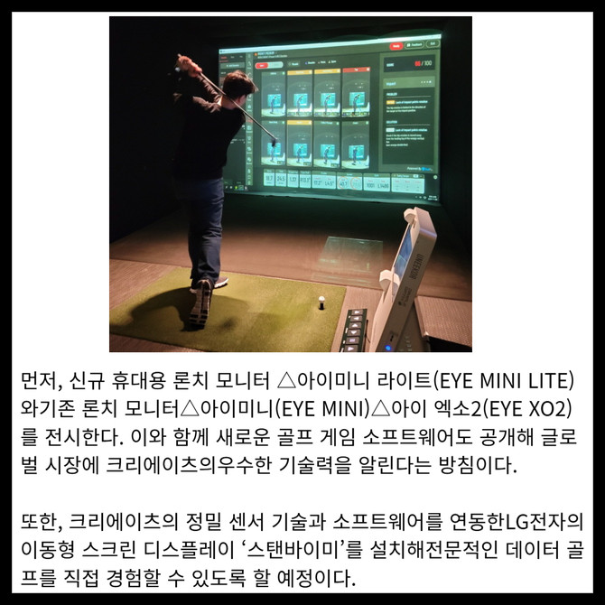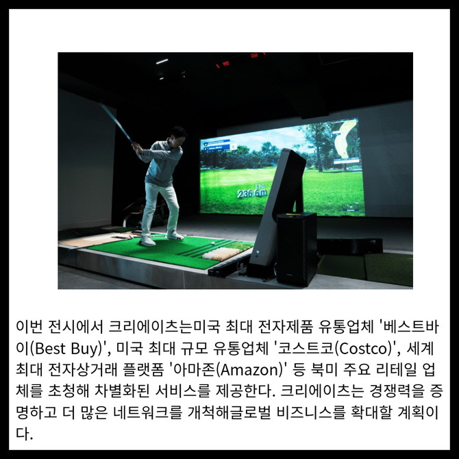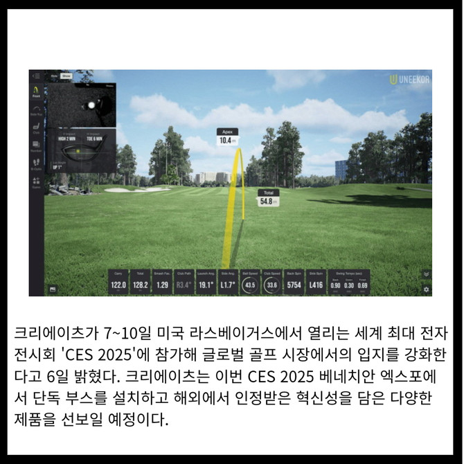 [프라임경제] 크리에이츠가 7~10일 미국 라스베이거스에서 열리는 세계 최대 전자 전시회 'CES 2025'에 참가해 글로벌 골프 시장에서의 입지를 강화한다고 6일 밝혔다. 크리에이츠는 이번 CES 2025 베네치안 엑스포에서 단독 부스를 설치하고 해외에서 인정받은 혁신성을 담은 다양한 제품을 선보일 예정이다.