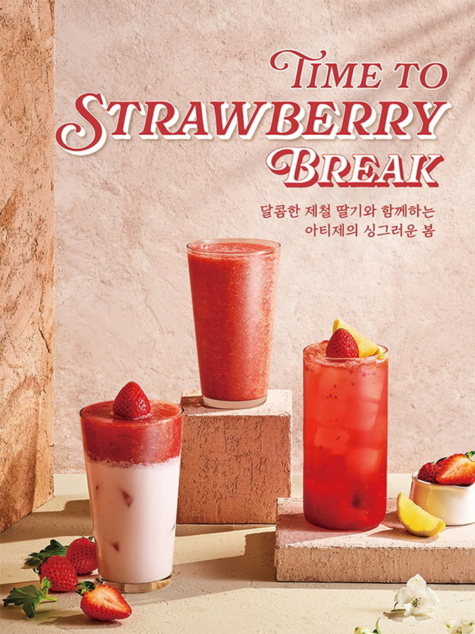 시즌 음료는 고당도 설향 딸기의 새콤달콤함을 그대로 담은 스트로베리 주스를 비롯해 부드러운 우유와 조화를 이룬 스트로베리 라떼, 상큼한 레몬의 청량감을 더한 스트로베리 레몬 에이드로 다채로운 맛을 구현했다.