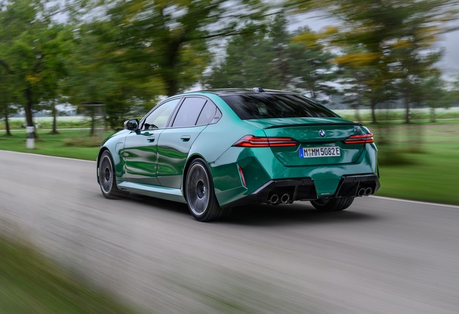 뉴 M5는 차별화된 디자인과 M 전용 요소를 더해 고성능 스포츠 세단 특유의 역동성을 강조했다. 먼저 휠 아치를 더욱 두툼하게 다듬어 근육질의 외관을 완성했고, M 전용 키드니 그릴과 BMW 아이코닉 글로우를 더해 카리스마 있는 인상을 보여준다. M 전용 외장 색상인 아일 오브 맨 그린(Isle of Man Green)도 새롭게 추가 제공한다.