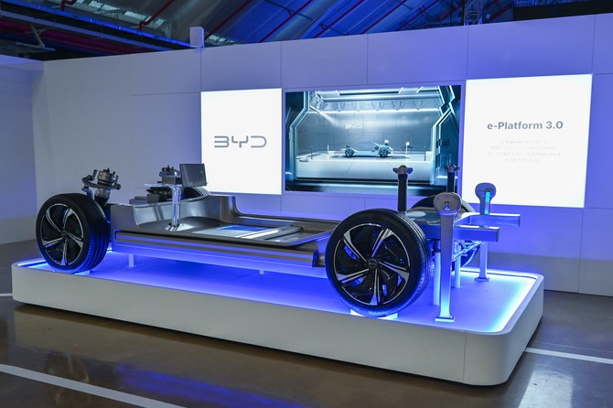 BYD의 전용 전기차 플랫폼 'e-Platform3.0' 모형. ⓒ BYD코리아