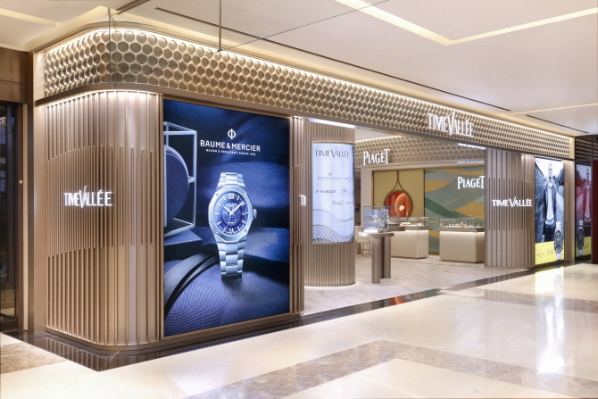 이번 매장은 넓은 공간을 오픈 부티크 컨셉으로, 타임밸리 고유의 골드 색상으로 고급스럽고 우아하게 구현했다. 또한 전용 VIP 살롱인 '라뜰리에(L'Atelier)를 마련해 고객 편의를 더했다.