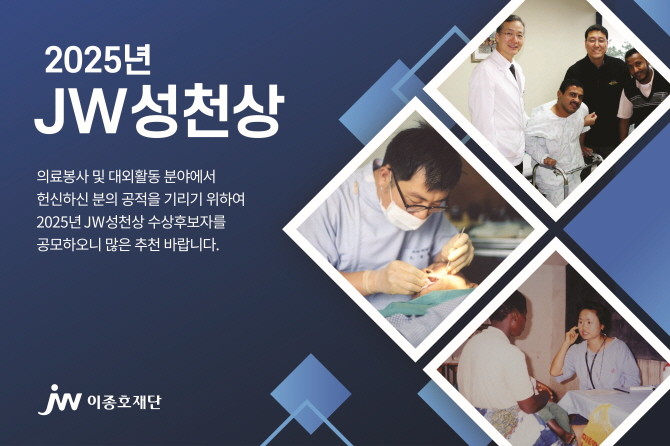 JW중외제약의 공익재단인 JW이종호재단은 2025 JW성천상 수상 후보자를 공모한다고 밝혔다.