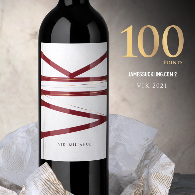 신세계면세점이 세계적 와인 평론가 제임스 서클링(James Suckling)으로부터 100점 만점을 받은 칠레 프리미엄 와인 '빅(VIK) 2021'을 업계 단독으로 선보였다.