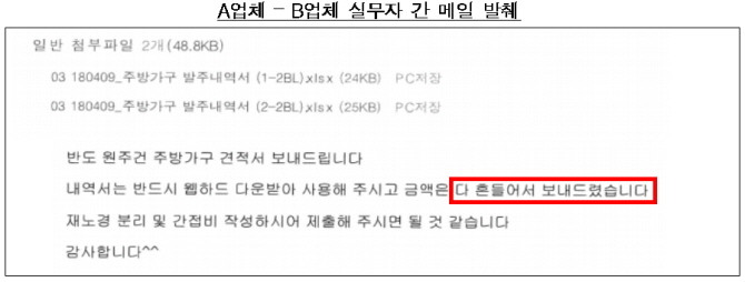 가구업체들은 저가수주를 방지하기 위해 입찰 전 모임 또는 유선연락을 통해 사전에 낙찰예정자를 결정하고 이메일, 카카오톡 등을 통해 견적서를 공유함으로써 투찰가격을 합의했다. 또한 낙찰예정자를 명시적으로 합의하지 않고 견적서 교환을 통해 입찰가격만을 합의하기도 했다. 입찰가격이 기재된 견적서를 공유받은 업체는 그대로 또는 그보다 높게 투찰하는 방식으로 합의를 실행했다.