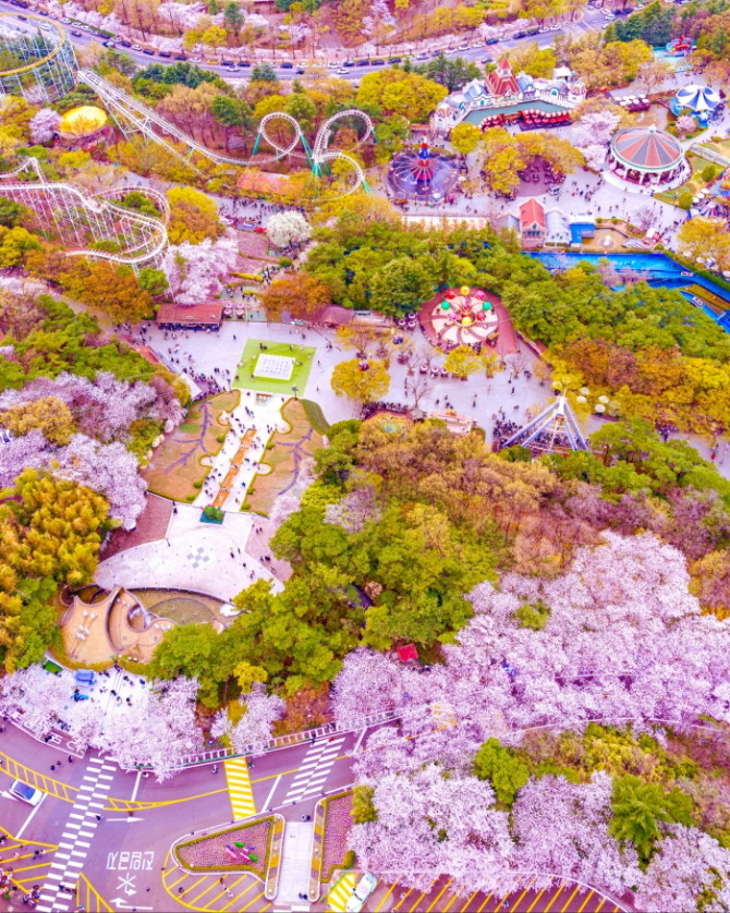 83타워 벚꽃길은 화려한 조명 '레인보우 블라썸 라이팅'이 어우러져 야간에도 벚꽃을 감상할 수 있는 공간으로 거듭난다. 이월드의 사진 명소 '빨간 2층 버스'는 벚꽃 개화 기간 동안 더 많은 고객들이 만날 수 있도록 83타워 아래 구역으로 이동한다.
