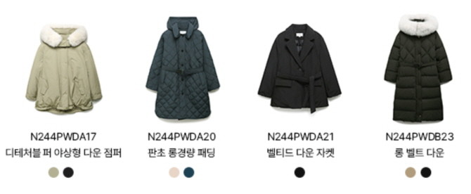 덕다운이 혼용된 나이스클랍 구스다운 4개 제품. © 롯데지에프알 홈페이지 캡처