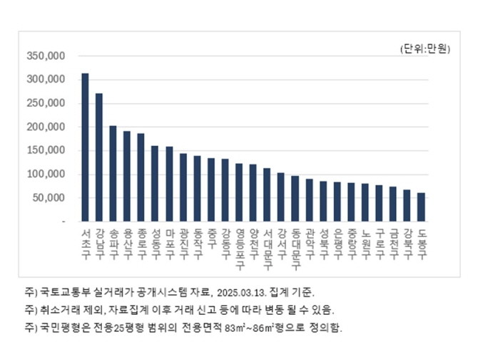 국민평형 평균 14억3895만원…서초구 '가장 비싸게 거래' 31억4043만원