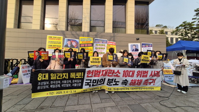 [프라임경제] 한덕수 국무총리 탄핵 여부를 가를 헌법재판소 선고가 다가오는 가운데 24일 오전 헌재 앞에서 시민들이 탄핵 반대를 외치고 있다.