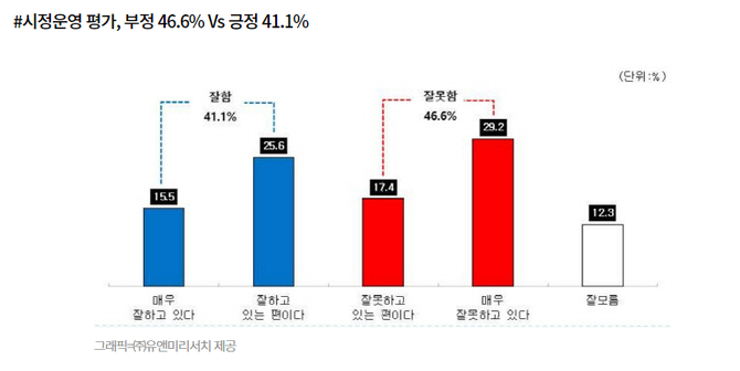 ◆시정운영 평가, 부정 46.6% Vs 긍정 41.1%