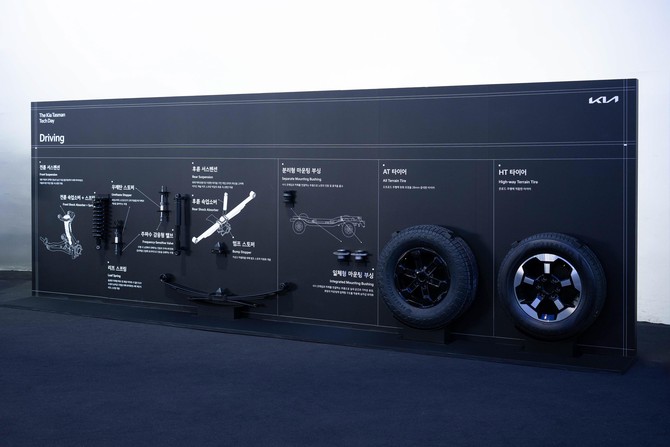 또 기아는 타스만의 전·후륜 쇽업소버에 다양한 노면에서의 운행에 적합하게 튜닝된 주파수 감응형 밸브와 차체의 움직임을 줄여주는 우레탄 스토퍼를 적용해 승차감을 더욱 향상시켰다. 아울러 타스만 기본 모델에 온로드 주행에 적합한 HT(High-way Terrain) 타이어를 장착하고, X-Pro 모델에는 외경이 28㎜ 커지고 오프로드 주행에 적합한 트레드 패턴이 적용된 AT(All-Terrain) 타이어를 장착해 각 모델에 특화된 주행경험을 제공한다.