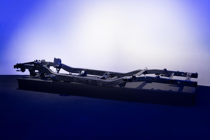 타스만의 플랫폼은 두 개의 굵은 프레임이 크로스멤버로 연결된 형태의 보디 온 프레임(Body on Frame) 구조가 적용됐다. ⓒ 기아