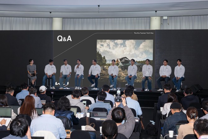 이번 행사는 RV 시장을 선도해온 기아가 처음으로 선보이는 정통 픽업인 타스만에 적용된 다양한 특화사양을 상세히 소개하고, 기아의 우수한 기술력을 알리기 위해 마련됐다. 또 기아는 타스만 개발을 담당한 연구원의 발표를 통해 타스만에 적용된 다양한 온·오프로드용 기술을 소개하고, 관련 부품을 전시한 별도의 공간도 구성했다.