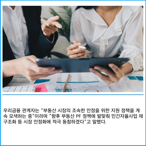 [프라임경제] 우리금융그룹(316140)이 부동산 프로젝트파이낸싱(PF) 시장 안정화를 위해 다양한 대응방안을 적극 추진하겠다고 28일 밝혔다.
