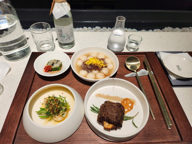 '새로 술상'은 넷플릭스에서 방영한 흑백요리사의 '장사천재 조서형 셰프'와 협업해 선보이는 새로 술상은 포석정을 모티브로 꾸민 테이블에서 식전주로 시작해 떡갈비, 감태김밥 등 4종의 메뉴와 디저트 및 칵테일로 구성했다.