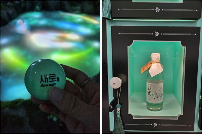 풍류 연못에서 낚은 소원 구슬(왼쪽)과 2층 다이닝 공간에 나만의 새로가 담긴 보관함이 자리하고 있다. = 추민선 기자