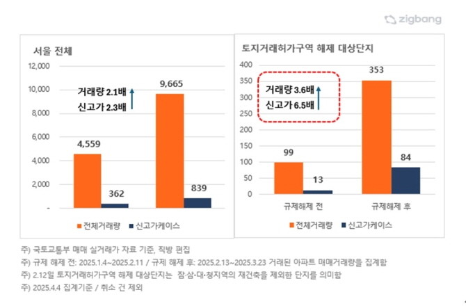 이후 강남권 중심으로 일부 단지에서 가격이 상승하며 시장 분위기가 술렁이자, 정부와 서울시는 3월24일부터 강남3구·용산구 전체를 거래허가구역으로 확대 지정했다. 단기 수요 유입·거래 증가가 거래허가구역 해제 또는 재지정에 따른 직접 결과인지 여부는 추가 분석이 필요하지만, 규제 변화가 수요자 심리에 영향을 미친 것으로 분석된다.