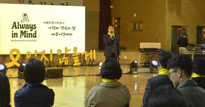 임채성 의장이 16일 세월호 세종시민대회 참석해 생존자와 유가족들에게 깊은 위로를 전했다. ⓒ 의회사무국