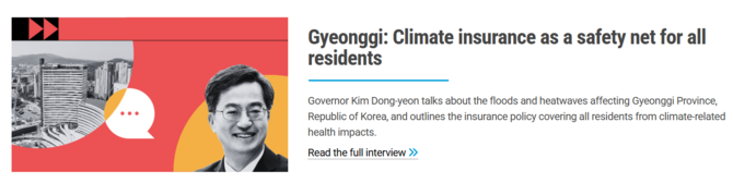 '기후보험'을 비롯한 경기도의 정책들은 향후 국내 다른 광역자치단체는 물론, 국제사회에 적용 가능한 글로벌 정책모델로 발전하고 있다.