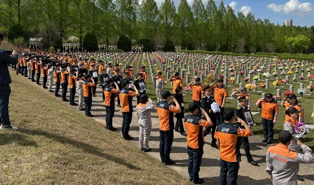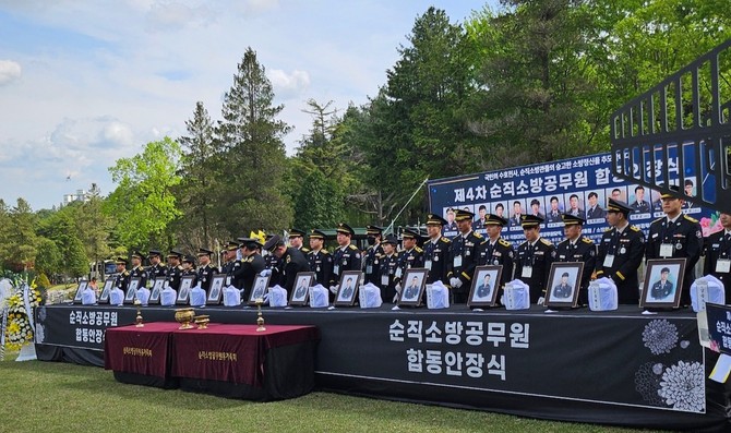 [프라임경제] 소방청(청장 허석곤)은 지난 23일 국립대전현충원에서 '제4회 순직소방공무원 합동안장식'을 거행했다고 밝혔다. 이날 안장식에는 유가족과 이희완 국가보훈부 차관, 이영팔 소방청 차장, 동료 소방관, 의용소방대원 등 350여 명이 참석해 고인들을 애도했다.