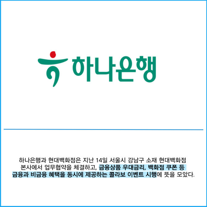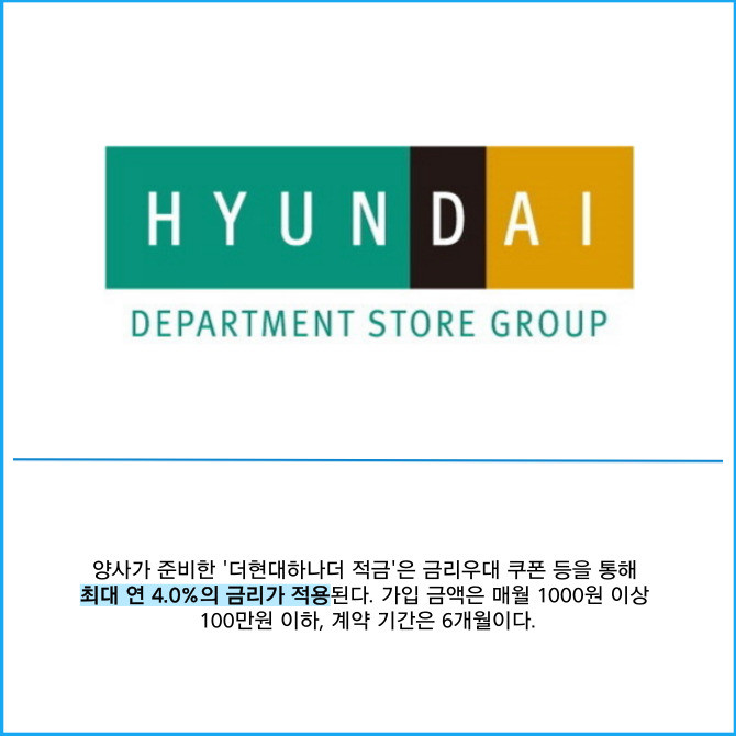 [프라임경제] 하나은행은 현대백화점과 함께 매월 풍성한 혜택을 제공하는 '더현대하나더 적금' 가입 이벤트를 실시한다고 15일 밝혔다.