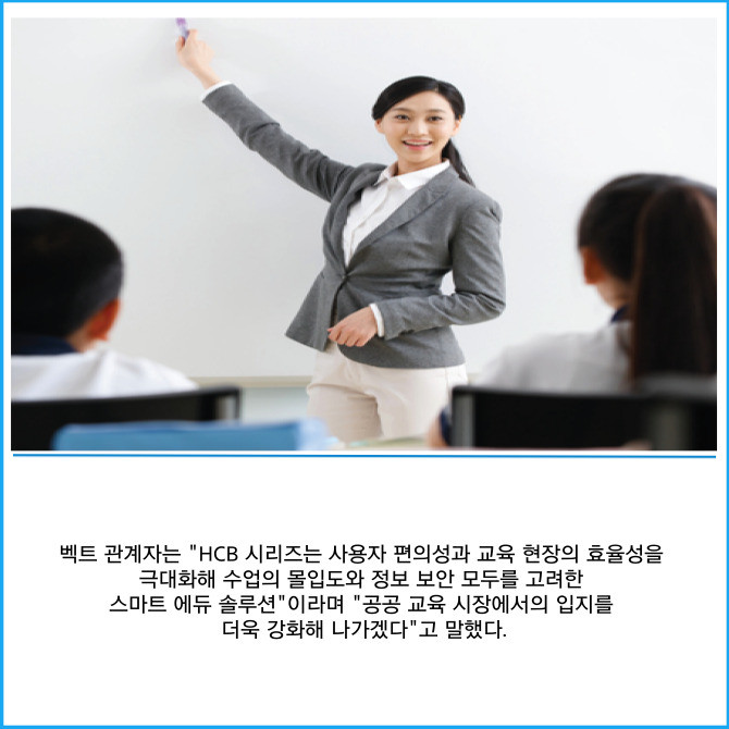 [프라임경제] 스마트 에듀테크 전문기업 벡트(457600)는 자회사 이솔정보통신의 인공지능(AI) 전자칠판 'HCB 시리즈'가 조달청 우수조달제품 지정을 받았다고 6일 밝혔다.