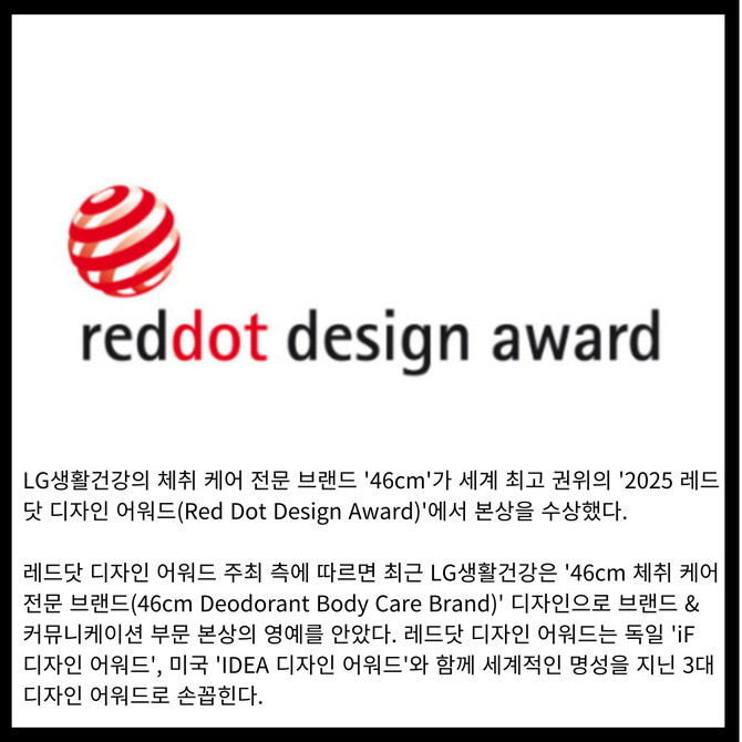 [카드] LG생활건강 체취 케어 브랜드 '46cm' 레드닷 디자인 어워드 본상 수상