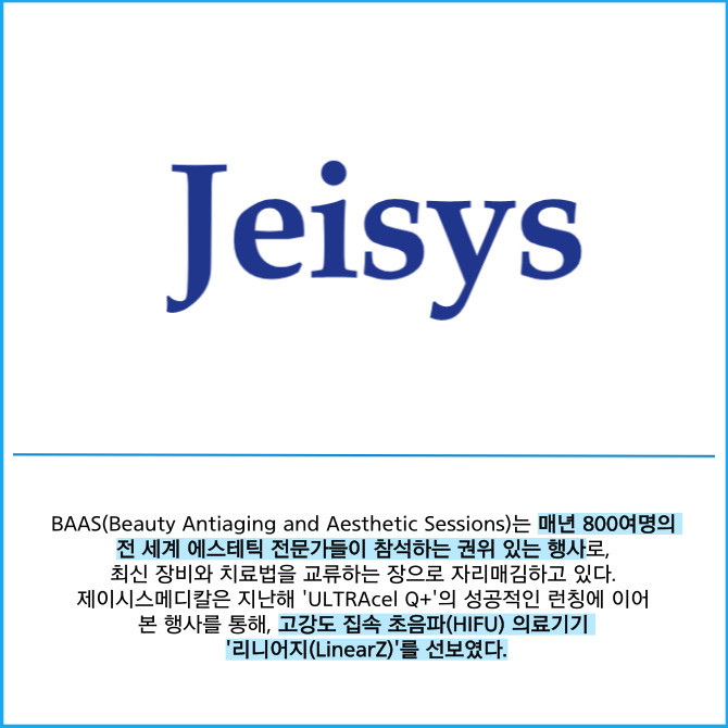 [카드] 제이시스메디칼, 'BAAS 산티아고 2025'서 고강도 집속 초음파 의료기기 '리니어지' 공개