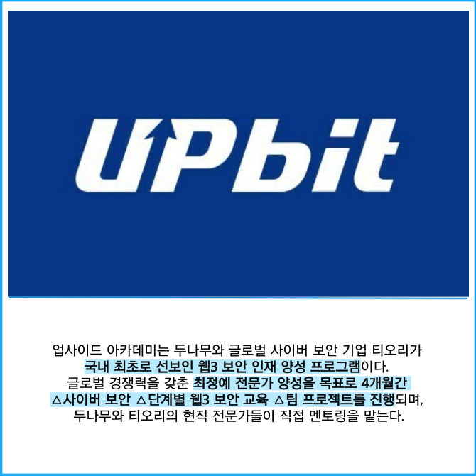 [프라임경제] 국내 1위 가상자산거래소 업비트를 운영하는 두나무는 지난 18일 청년 보안 인재들의 첫걸음, '업사이드 아카데미 3기 발대식'을 진행했다고 19일 밝혔다.